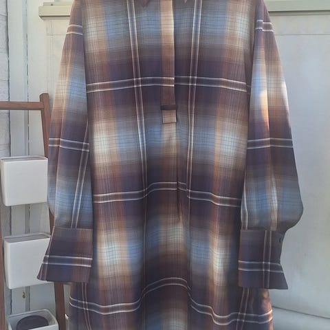 Pituus olka-helma: 88 cm, pitkät hihat, napitus, kaulukset