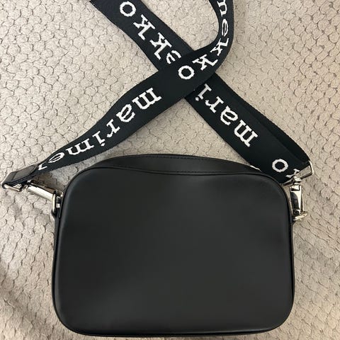 Marimekko Gratha nahkainen laukku, musta,säädettävä olkahihna, jossa Marimekon logo tekstillä. Laukku on uusi, laput kiinni. Dustbag mukaan. Tästä vaikka pikkujouluun hieno laukku tai lahjaksi.