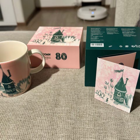 Uusi ja tarrallinen Arabia Joulutervehdys muumimuki (1997-2002). Alkuperäinen paketti mukana.