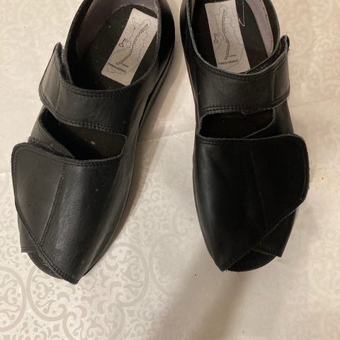 Myydään kuvan käyttämättömät, laadukkaat seniorikengät. Tarrakiinnitys, joten ovat helppo pukea ja riisua. Kotimaiset Pirka-kengät, pesunahkaa.