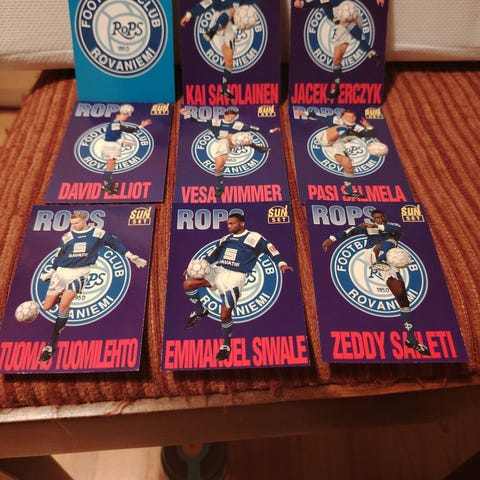 Keräilykortteja Sunset 1995 - sarjasta, urheilukortteja, jalkapallo, kortteja, Rodrico myyty, yhteishintaan tasaraha 4 € posteineen.