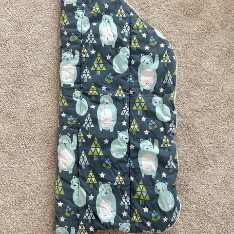Pöllökuvioinen äitiyspakkauksen makuupussi. Kunto siisti.
