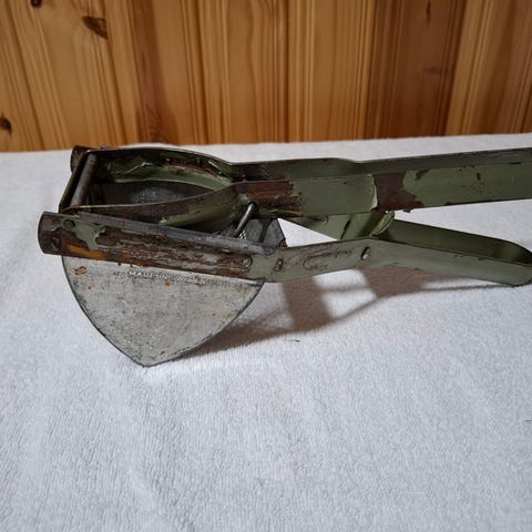 Pari kertaa käytetty peruna- ja hedelmäpuristin. Elsassilaistyylinen spätzle-kone, 3 ruostumattomasta teräksestä valmistettua levyä. Metaltex pressy