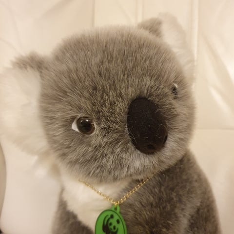 Mindfulness Koala-pehmolelu. Tassua painamalla alkaa 5 minuutin ohjattu meditaatio.