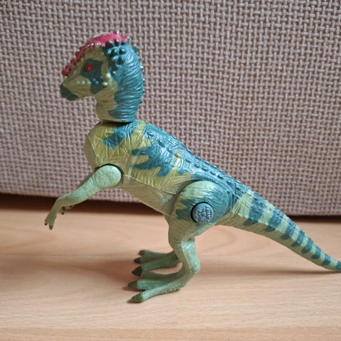 Vihreä velociraptor figuuri. Kunto erinomainen. Hasbron vuoden 2003 mallistosta. Ollut ilmeisesti jossain Action Man setissä mukana. Ei ääntä tai patteritoimintoa. Raajoja voi liikutella ja sekä päätä että häntää käännellä. Suu ei mene kiinni. Pituus noin 15cm, korkeus 13cm.