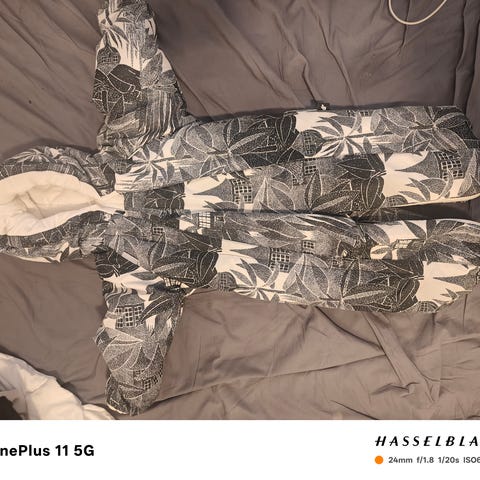 Hyväkuntoinen, ainoastaan kuvissa näkyvää nyppyä polvien kohdalla.