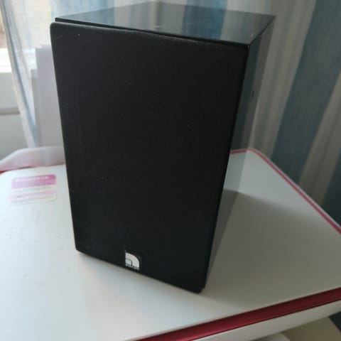 kaiutin, valkoinen, kompakti koko. Sopii esimerkiksi kotikäyttöön tai pieniin tiloihin. Materiaali muovia ja kangasta kaiutinelementin edessä. Neljä kappaletta.