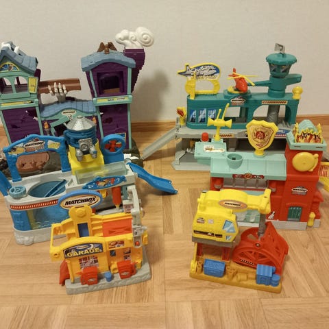 Matchbox'in neljä leikkialustaa: bussiasema, kanjoni, lentokenttä ja lautta.