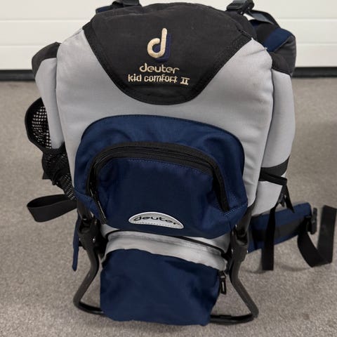 Deuter lasten kantoreppu harmaassa värissä. Säädettävät olkaimet ja vyötärötuki. Materiaali on kestävä ja sopii ulkoiluun ja retkeilyyn lasten kantamiseen. Hyvin vähän köytön jälkiä, "hupussa" pari tahraa jotka lähtenee puunaamalla. "Hupun" pieni alkuperäinen sadesuoja mukana. Nouto, kuljetus sovittavissa Kouvola/Lahti.
