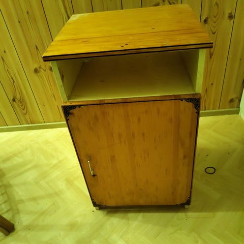 Hyväkuntoinen muovinen laatikosto pyörillä. Harmaa runko ja vaaleankeltaiset laatikot. Voi käyttää myös ilman laatikoita. N.40cm x 40cm x 65cm. Vähän heppoisen oloista muovia.