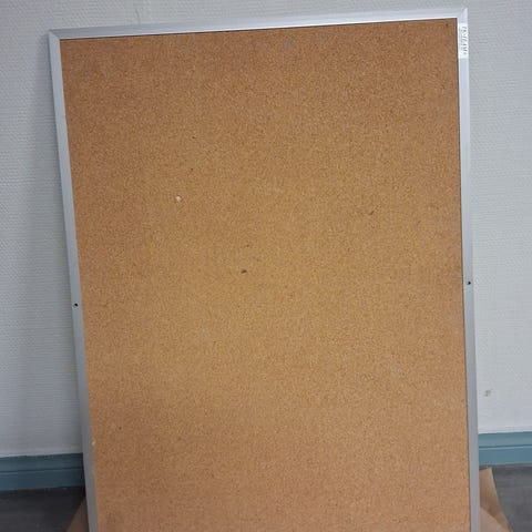 Vaalea ilmoitustaulu hopeisella kehyksillä. Siisti. Nouto salosta