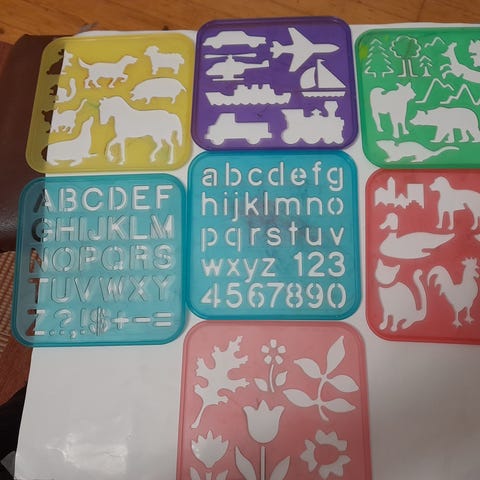 Tupperware piirrustuslevyt sekalaisella teemalla.