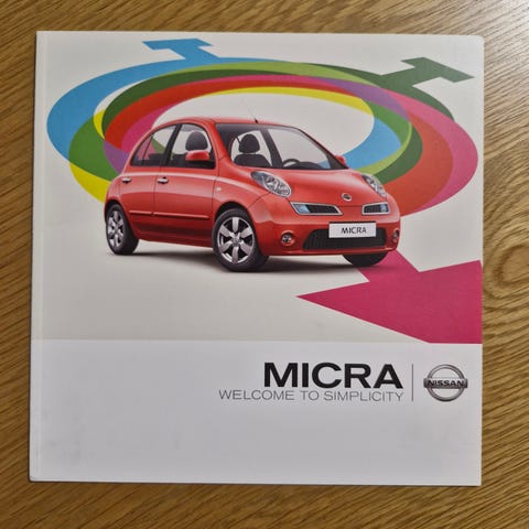 Nissan Micra -esite. Laadukas, kanttikylkinen painos.