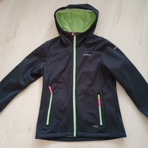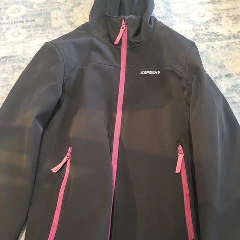 Hyväkuntoinen, ehjä ja siisti irrotettava huppu, vetoketjulliset etutaskut.