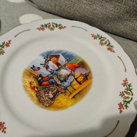 Lautasen halkaisija on 21 cm. Nouto Järvenpää, postitse tai toridiilillä.