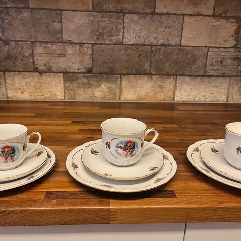 Myynnissä hyväkuntoiset Apilanlehden perinnejoulu lautaset 6 kpl.