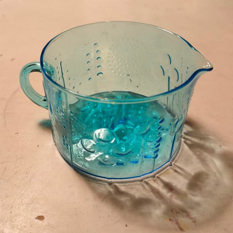 Oik.puol.Iittala Vanha Lasi Kermakko, kork.9cm, suun halk.6cm 15 euroa.
