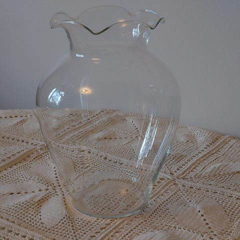 Pikku maljakko jossa sivuilla ripustuslenkit. Mitat: kork. 13,5cm leveys max. 7cm. Vain nouto.