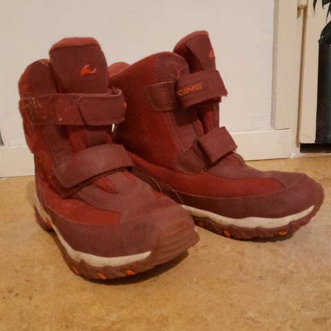 Viking lasten talvikengät tytöille, koko 35. Kengät ovat violettia väriä ja suunniteltu tarjoamaan lämpöä ja suojaa kylmillä säillä. Kengissä on tarrakiinnitys helpottamaan pukemista ja säätämistä. Materiaalina käytetty kestävää ja vettähylkivää materiaalia.