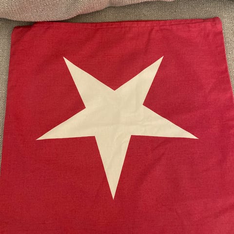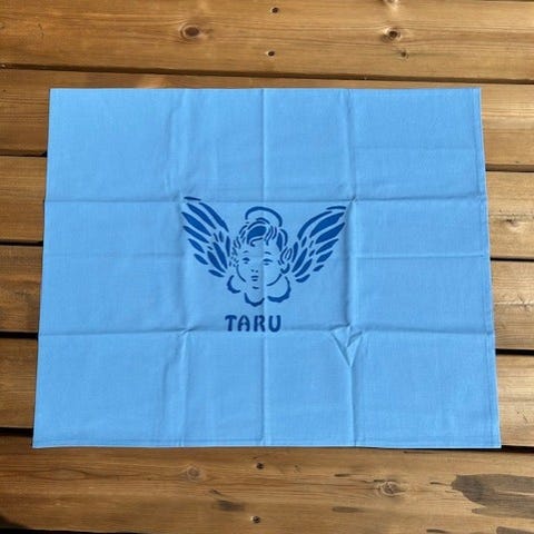 Uusi ommeltu 50x60cm tyynyliina, käsinpainettu enkeli kuva ja Jatta teksti.
