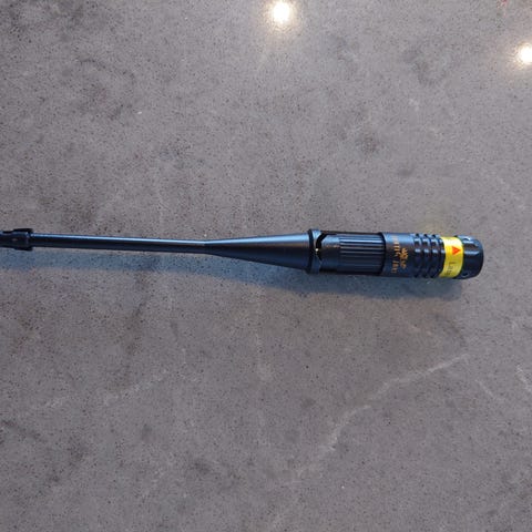 Viherlaserin kohdistus tähtäimen mukaiseksi lasersäteen sivu- ja korkeussäätöruuveilla