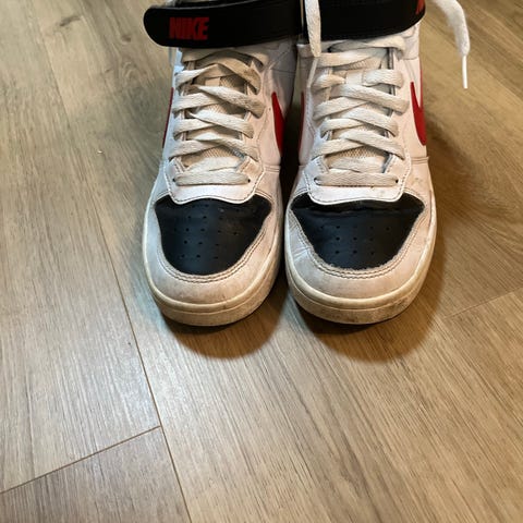 Kunto kohtalainen. Vasemman kengän oikealla puolella pieni halkeama, ei haittaa käyttöä.