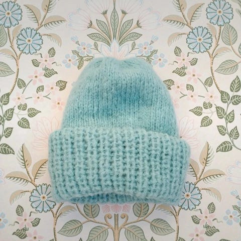 Rakkaudella itse neulottu turkoosi naisten yhden koon silkki-alpakka pipo, malli 2 (erona malliin 1 tässä joustoneulos jatkuu päälaelle).