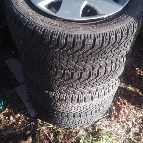 Myydään lain kirjaimen täyttävät nastarenkaat vanteilla.