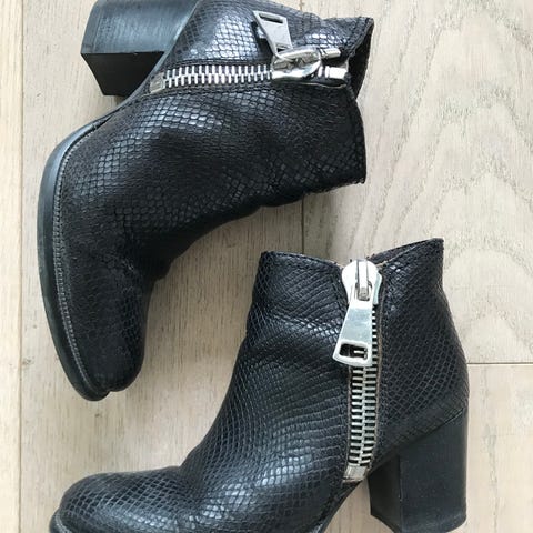 Mustat H&M nilkkurit aitoa nahkaa. Pohjassa kuvio, mukavat jalassa.