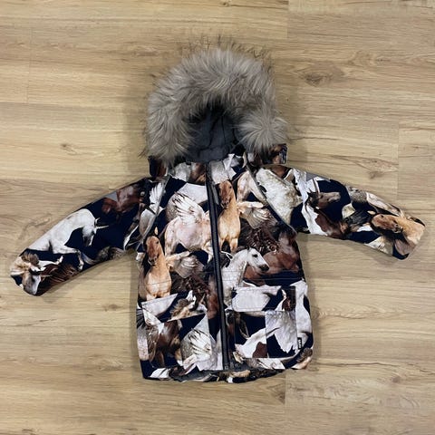 Molo lasten hupullinen talvitakki, koko 98. Takki valmiiksi pesty, ei ole ollut lemmikkitaloudessa. Maksu mb tai käteinen. Vain nouto.