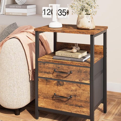 Tyylikäs ja käytännöllinen yöpöytä kaarevilla kulmilla ja korotusreunoilla, jotka estävät tavaroita putoamasta. Mukana irrotettava kangaslaatikko ja vakaat “7”-muotoiset jalat. Sopii myös sivupöydäksi tai sohvapöydäksi.