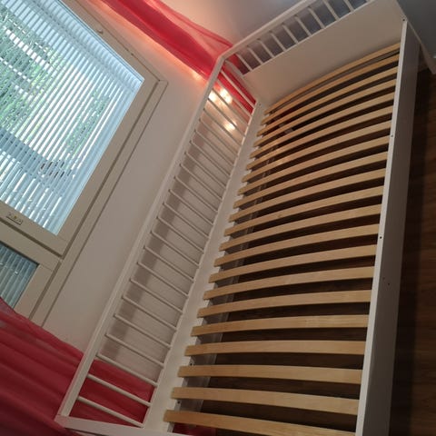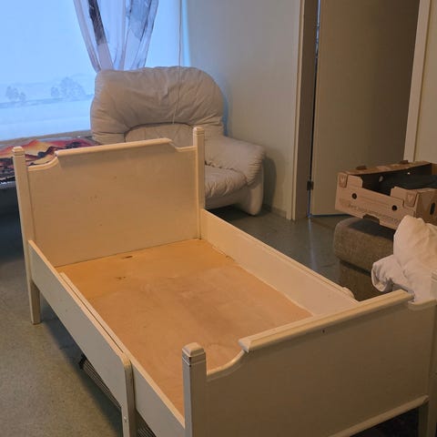 Peruskuntoinen, ehjä, jatkettava lasten sänky. Valkoinen, maalipinta pääosin siisti. Mitat: pituus 140-200 (säädettävä). Lev 85cm. 75cm leveä patja mahtuu. Vain haku, Kaukaalta.