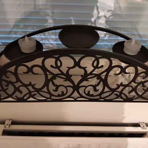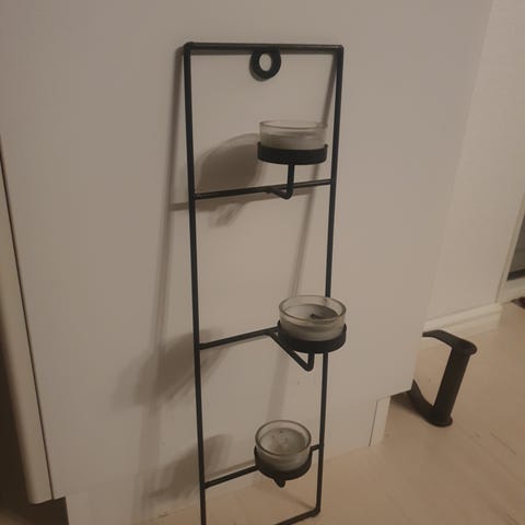 Teline 9 tuikkukynttilälle. Avattuna leveys 100cm ja korkeus 54 cm. Voi siis taitella eri kulmiin.
