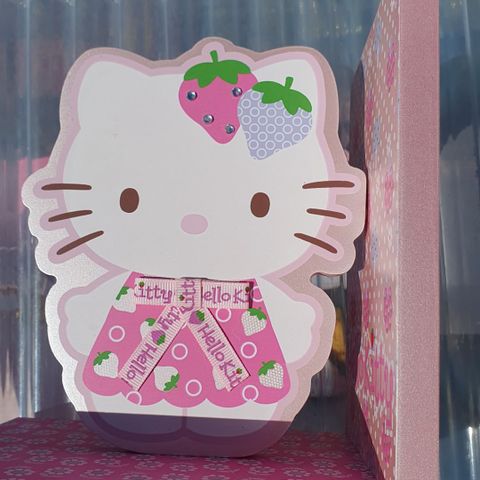 Hello Kitty 3 lastikoinen korulipasto samaa sarjaa kun kaikki muut Hello Kitty tavarat myynnissä.Kork 25cm lev.10cm.Hyvä pikku tavaroiden säilytykseen