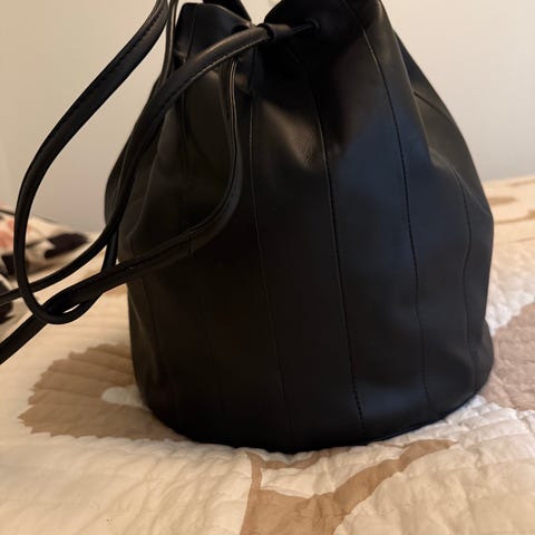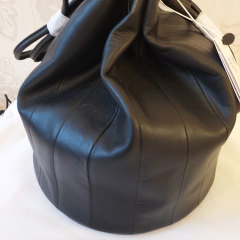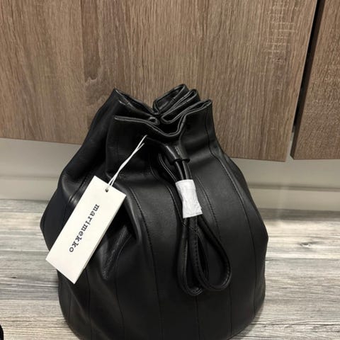 Nahkainen musta Marimekon iso keira laukku. Kunto hyvä,pohjan kulmissa pientä kulumaa,näkyy kuvissa.
