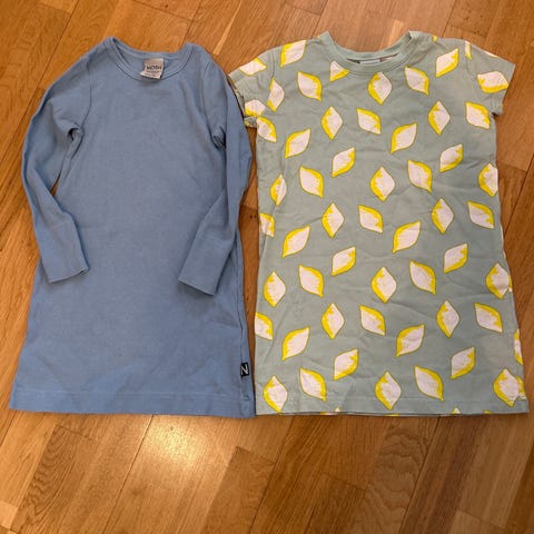 Nosh mekot, koko 98/104. Ainoa moite keltaisen mekon helmassa tahra, kuvissa.