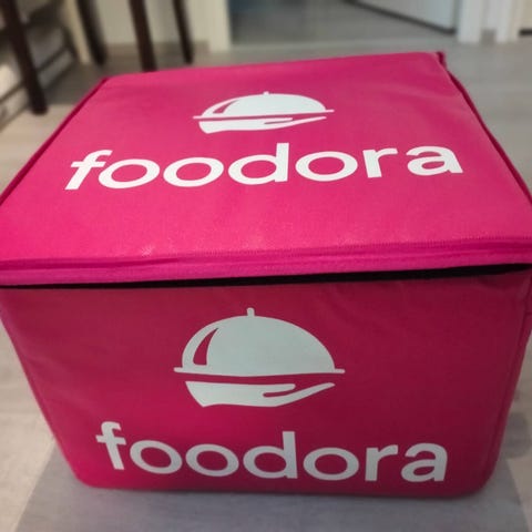 Foodora transport bag with insulating properties to maintain food temperature. The bag is pink in color and made of durable material. Suitable for food transport and delivery. 35 cm long, 20 cm wide, 30 cm high。You need to pick it up yourself at Vantaa.
