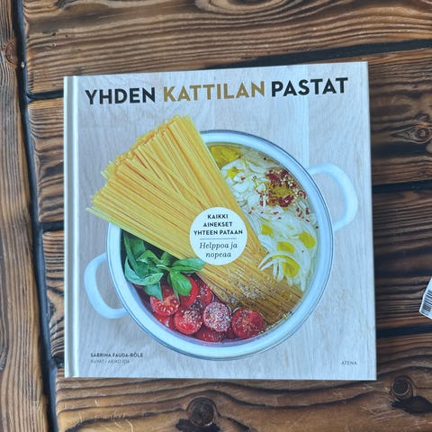 Pasta keittokirja. Takasivulla yksiköille muuntotaulukko. Englanninkielinen.