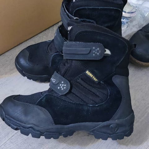 Myydään Viking lasten kengät koko 38, musta väri. Kengät on suunniteltu pojille ja ne sopivat arkikäyttöön. Materiaalina käytetty kestävää ja lämminvuorista materiaalia. Kulumia näkyy, täysin ehjät.