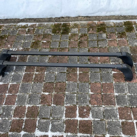Olleet käytössä kattokaiteellisessa Volvo V70-mallissa. Sopinee muihinkin kattokaiteisiin. Voi kokeilla ennen ostoa. Sopii kattokaiteisiin, joiden sisämitta min 88 cm ja max 105 cm. Neliskanttiset squarebar-putket. Putkien pituus 122 cm. Kiinnitys kaiteisiin torx-avaimella. Avain on mukana.