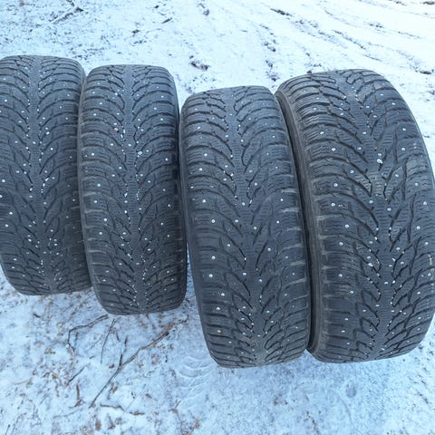 Nokian nastarenkaat joissa reilusti pintaa 7,5mm+. Nastat hyvin tallella ja ehjiä.