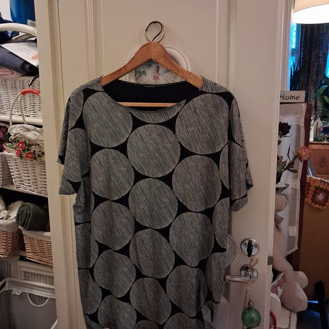 Nanso Pusero naisten XL-koko, väriltään punainen ja musta. Pitkähihainen pusero, jossa pyöreä pääntie ja koristeellinen nappi. Käytetty vain pari kertaa.
