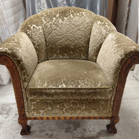 Hienossa kunnossa oleva chippendale sohvaryhmä. Sohva ja kaksi nojatuolia.
