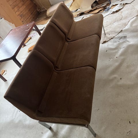 Ylimääräiseksi jäi vintage vuodesohva iskun vanhaa mallistoa eli kotimainen. Aitoa nahkaa. Hyvä kuntoinen.