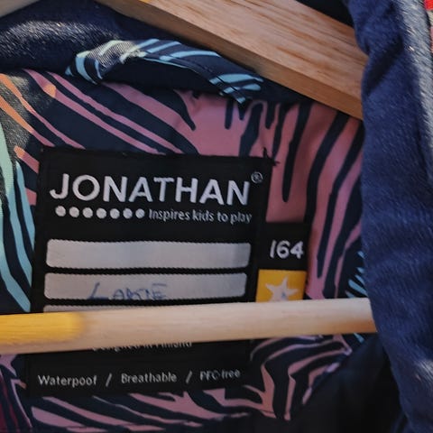Jonathan Kirjava lasten takki, koko 164, tytöille. Takki on väriltään kirjava ja valmistettu materiaaleista, jotka ovat vedenpitäviä ja hengittäviä. Tuote on PFC-vapaa.
