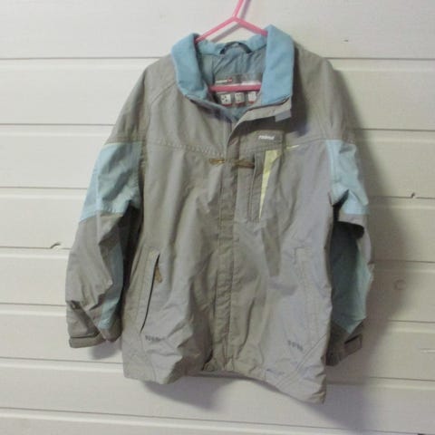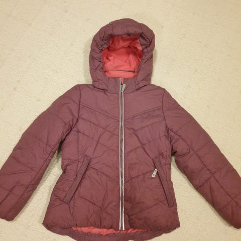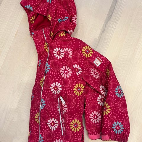 Reimatec lasten toppatakki koossa 128. Kunto muuten hyvä, mutta hihoissa ja erityisesti helmassa takana pinnassa kulumaa.