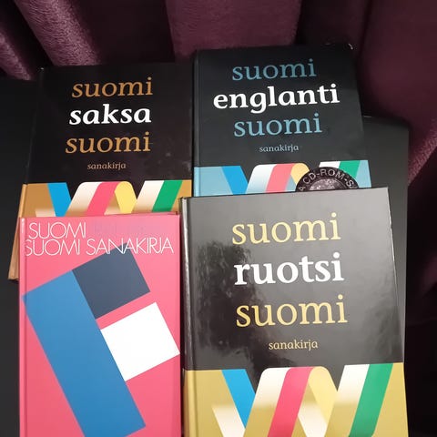 Myydään Saksan, Ruotsin, Englannin ja Ranskan sanakirjat.