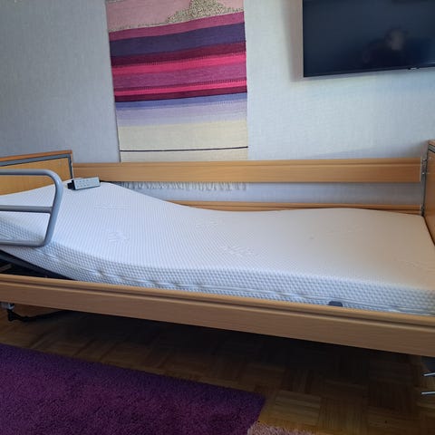 Hoivasänky on vuodelta 2015 ja ollut viimeiset 10v varastoituna autotallissa vähäisen käytön jäljiltä. Testattu ja kaikki sähkösäätöiset nostot ja kallistukset toimii. Säädettävät laidat (kuvissa yläasennossa) ja työnnettävissä pyörillä. Ilman patjaa, nähtävillä Kaarinassa.