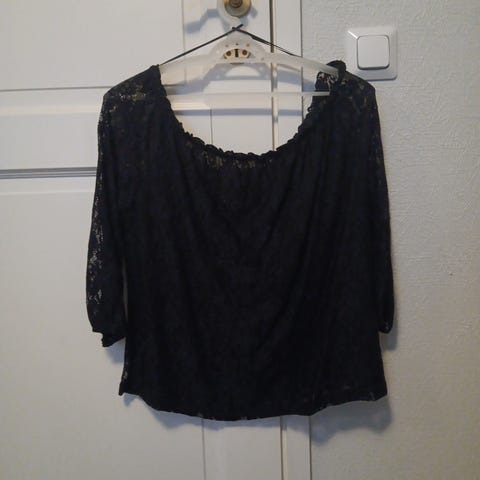 Ellos paita mustassa värissä, naisten koko 42. Paita on valmistettu pitsimateriaalista, joka on läpikuultava ja antaa vaatetukselle koristeellisen ilmeen. Pitkähihainen malli sopii erilaisiin käyttötarkoituksiin ja asukokonaisuuksiin.