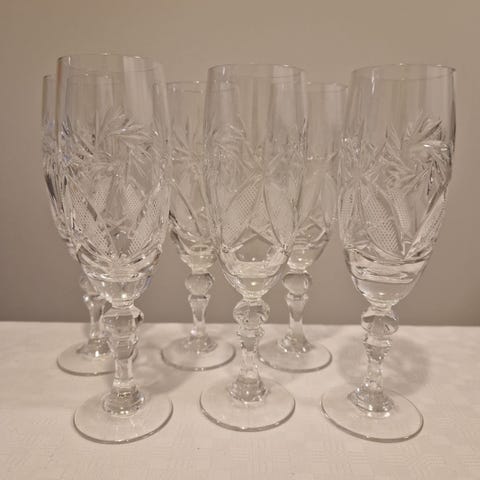 Kuusi kappaletta Virosta uutena ostettuja ja vain pari kertaa osin käytössä olleita Neman Glassworks kristallimartinilaseja, jotka ovat valmistettu Valko-Venäjällä. Yhdessä lasissa on pieni särö (kuva 3). Muuten ovat uuden veroiset.